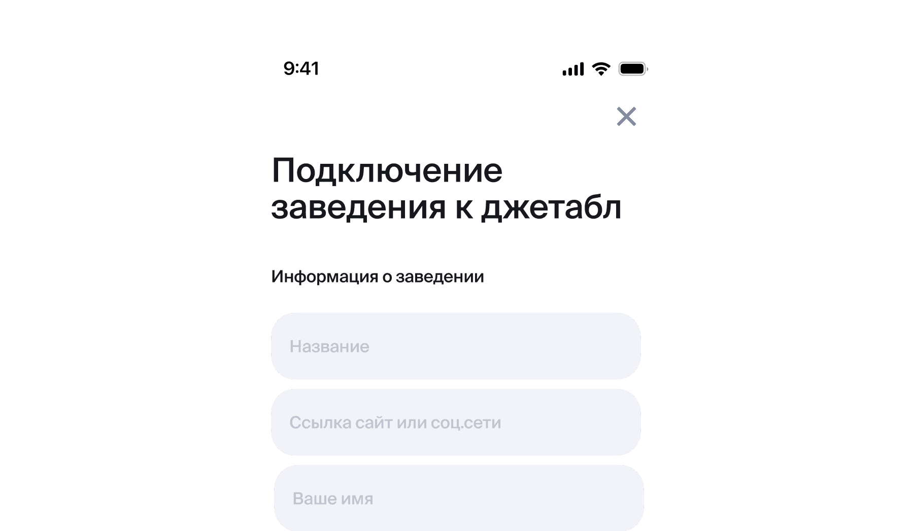 Оставье заявку и заполните короткую анкету с информацией о вашем заведении